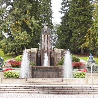 Situada en el extremo norte del parque Hämeenpuisto, la fuente exhibe detalles elaborados mediante estatuas de bronce y elementos acuáticos.