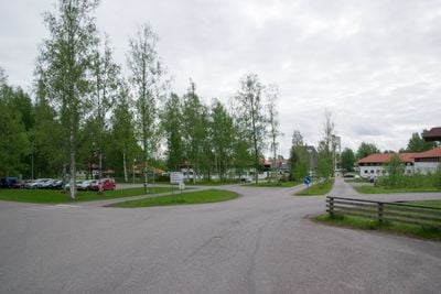 La torre de agua conectada al edificio de servicios se erige como punto de referencia local dentro del complejo cerca del lago Pieksäjärvi.