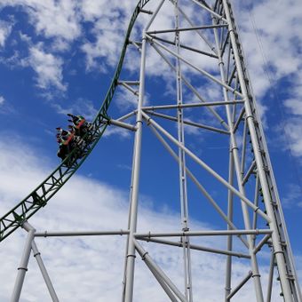 La montaña rusa Pitts Special se extiende por 693 metros y alcanza una altura de 43.5 metros con una caída vertical de 85 grados.