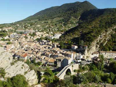 Nyons es una comuna del departamento de Drôme en Francia, situada a orillas del río Eygues entre montañas y colinas suaves. El casco antiguo conserva callejuelas angostas con casas de piedra, una torre medieval y un puente romano con un único arco que cruza el río.