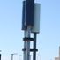 La torre de agua metálica alcanza 52 metros de altura con tres tanques de acero de 500 metros cúbicos cada uno sobre tres pilares grises.