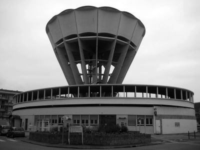 El edificio, diseñado por el arquitecto Guillaume Gillet y el ingeniero René Sarger, se construyó entre 1955 y 1957 para abastecer los barrios circundantes.