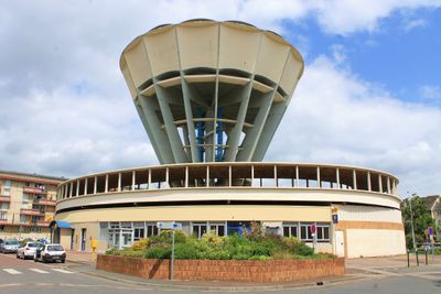 La torre de agua, ubicada en 812 Place de la Justice, alberga actualmente una oficina de correos y un garaje en su sección inferior.