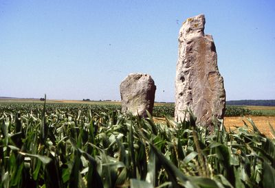 Los dos menhires, clasificados como monumentos históricos desde 1889, están separados por 8,90 metros cerca del caserío de Écoivres.