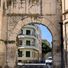 La Porte de France presenta un pasaje arqueado clásico con cuatro pilastras y una cornisa decorativa en la sección superior.