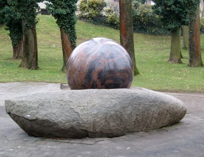 La Fuente de Galileo presenta una esfera de granito de un metro de diámetro sobre un pedestal con un peso superior a una tonelada.