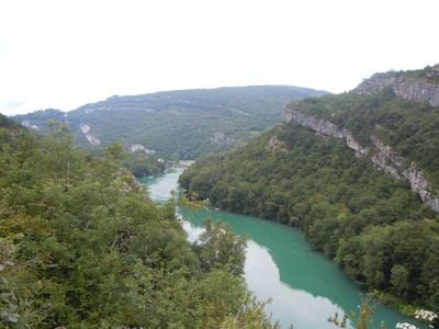 El río Ródano esculpió estas gargantas durante milenios, creando un paso natural entre la cadena del Mont Tournier y la Montaña de Parves.