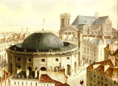 La cúpula original de madera de 1783 fue destruida por un incendio en 1802 y posteriormente reemplazada por una estructura de hierro fundido en 1811.