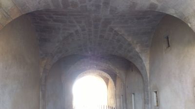 La sección norte del edificio descansa sobre un pasaje abovedado con un arco que se alinea perfectamente con la Rue Barreyre.