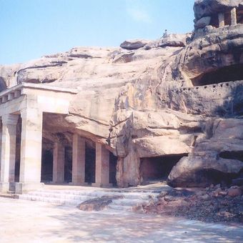 La inscripción Hathigumpha contiene diecisiete líneas grabadas en escritura Brahmi en la parte superior de una cueva natural en Bhubaneswar.
