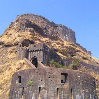 La fortaleza de piedra se eleva 1033 metros sobre el nivel del mar en la cordillera de los Ghats Occidentales, con cuatro puertas principales.