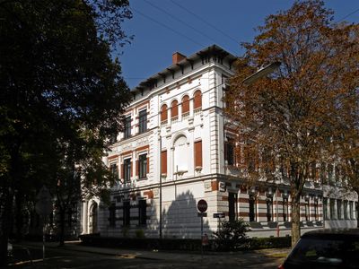 El Gymnasium Wenzgasse es un colegio secundario en Hietzing que combina elementos arquitectonicos clasicos con espacios educativos modernos. La fachada presenta grandes medias columnas corintias sobre la entrada principal, y el edificio se extiende por varios alas conectadas.