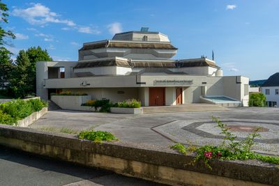 La Katholische Pfarrkirche Oberwart es un edificio de iglesia moderno con una estructura central octogonal característica hecha de hormigón de formas limpias. El interior cuenta con ventanas de vidrio marianas, mientras que una nave central amplia cubierta por una bóveda cuadrada y bóvedas de cañón rectangular que se extienden desde los brazos transversales definen el espacio.