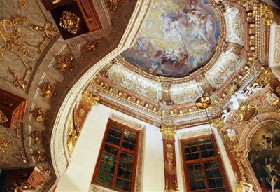 La Capilla del Palacio Belvedere se encuentra en la torre sureste del Belvedere Superior, con mármol rojizo y paredes blancas con decoraciones doradas.