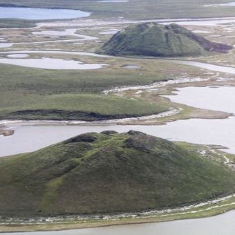 El área protegida abarca 16 kilómetros cuadrados y contiene ocho colinas naturales con núcleo de hielo que emergen de la tundra ártica.