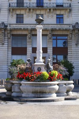 Fountain on the bridge over the Suze, decorative fountain in Biel/Bienne in the canton of Bern, Switzerland