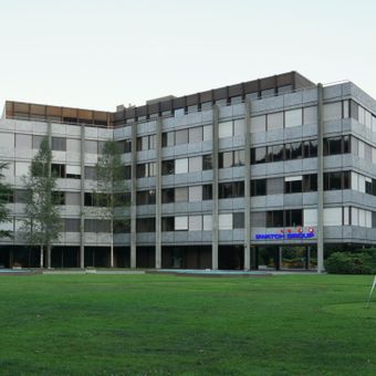 Former headquarters of OMEGA, office building in Bienne in the canton of Bern, Switzerland