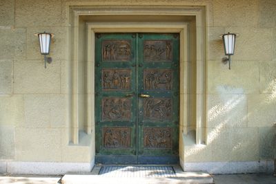 Scenes from the Passion of Christ, eight broze sculptures at the bridge portal of the Nydegg church in the city of Bern, Switzerland