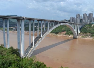 Wanzhou Yangtze River Bridge, Puente en arco de hormigón en Wanzhou, China
