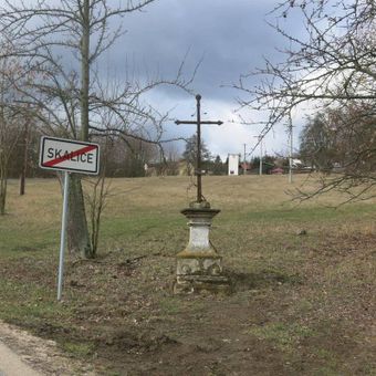 Kříž na západním okraji Skalice u Lovosic, pamětní kříž v obci Třebívlice, okres Litoměřice