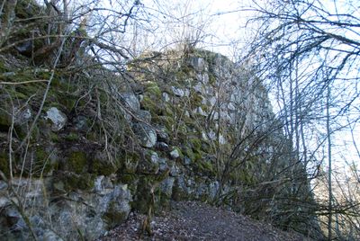 Situado en una posición elevada, el Burg Wartenberg exhibe muros de piedra y cimientos que demuestran técnicas de construcción y arquitectura defensiva medieval.