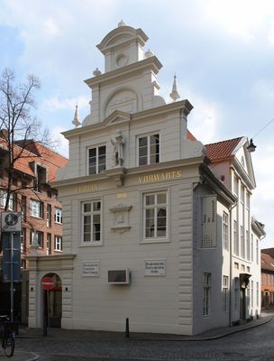 La fachada residencial del edificio se reconstruyó en la década de 1990 según los diseños arquitectónicos de Wilhelm Hermann Lüninghusen de 1882.