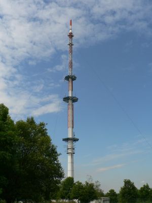 Deutsche Funkturm construyó la torre de comunicaciones de acero en 1994, midiendo inicialmente 175 metros antes de las modificaciones durante la transición digital de 2007.