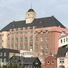 El Haus des Volkes se levanta cerca de la estación ferroviaria con una estructura multinivel que presenta líneas limpias y un tejado a cuatro aguas.