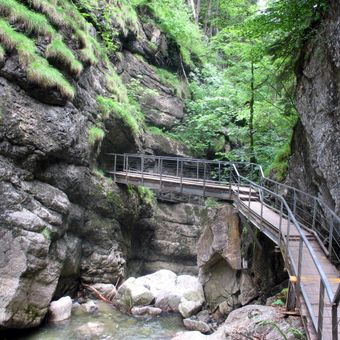 Starzlachklamm es una garganta en Sonthofen que ha sido excavada por el rio Starzlach en piedra caliza durante miles de anos, creando una garganta estrecha con paredes altas. El sendero a traves del canion revela cascadas, piscinas profundas y superficies rocosas lisas formadas por el agua corriente.