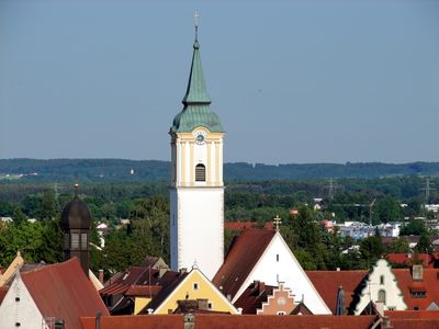 La construcción comenzó alrededor de 1400 como un edificio de una sola nave antes de que Master Ludwig de Pfeffenhausen completara la bóveda en 1516, creando el diseño de tres naves que vemos hoy. La torre fue reconstruida posteriormente en 1762 después de un rayo.