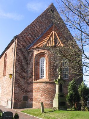 La iglesia se encuentra en el paisaje plano del norte de Alemania y es visible desde la distancia gracias a su torre, lo que facilita a los visitantes localizarla. El acceso a pie o en automóvil es directo, siendo los alrededores tierra agricola típica con campos abiertos.