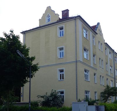 Teil eines Wohnblocks, Eckbau in schlichter deutscher Renaissance, 1900; siehe Camerloherstraße 71