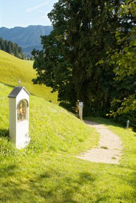 Rosenkranzstationen, Fünf steinerne Bildstöcke mit Stationen des schmerzhaften Rosenkranzes in Unterammergau