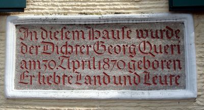 Georg Queri Geburtshaus, Inschrifttafel zur Erinnerung an den Dichter Georg Queri, geb. 30. April 1879