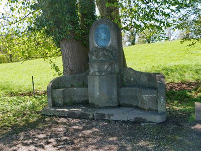 Tanera, von Steinbank flankierter Pfeileraufbau mit Bronze-Reliefbildnis, bezeichnet 1908
