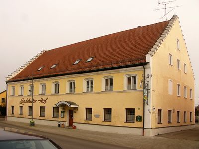Gasthof, zweigeschossiger Traufseitbau mit Staffelgiebeln und Stichbogenfenstern, drittes Viertel 19. Jahrhundert