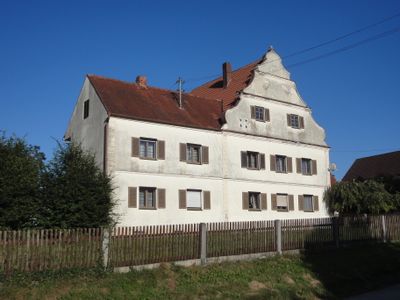 Schäfstoß, sogenanntes Schlößle, Wohnteil des Hauptgebäudes mit Schweifgiebel und Giebelgesimsen, um 1730