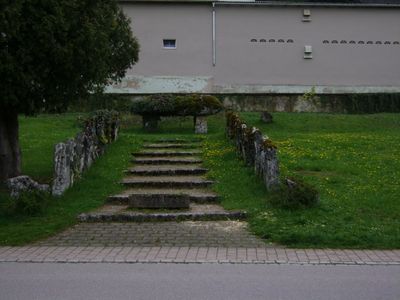Kriegerdenkmal in der Art eines Hünengrabs, mit 24 Steinblöcken mit Bronzeplatten und zugefügten Findlingsblöcken, von Ludwig Eberle, 1935