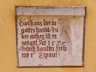 Bauinschrift des ehemaligen Gasthauses zur Eiche, building in Berching, Upper Palatinate, Germany