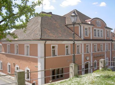 Rötz Marktplatz 3, zweigeschossiger Walmdachbau mit Zwerchhaus und Pilastergliederung, neubarock, um 1900