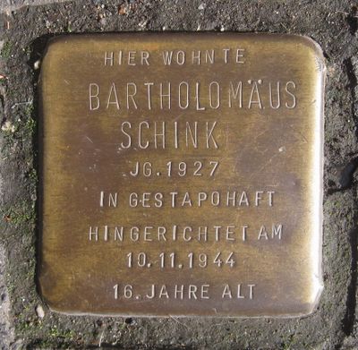 Stolperstein en memoria de Barthel Schink, Stolperstein in Köln-Ehrenfeld