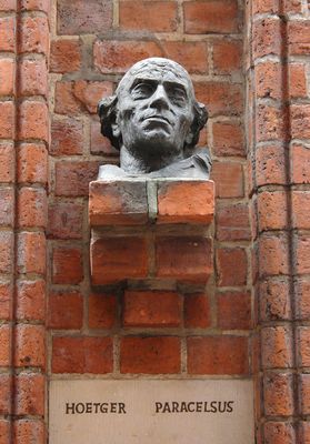 Kopf Paracelsus, Plastik in der Böttcherstraße in Bremen-Mitte