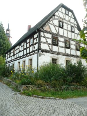 Pfarrhaus mit allen Bruchsteinmauern im Grundstück sowie gegenüber liegendes Backhaus (Nr. 3c) Kleindittmannsdorfer Straße 3, 3c