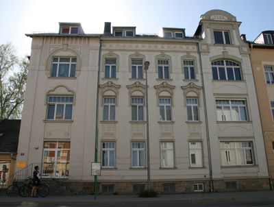 Mietshaus in geschlossener Bebauung Augustusburger Straße 53, mit Laden, qualitätvolle Jugendstilfassade, baugeschichtlich von Bedeutung. Jugendstilfassade, originale Putzfassung, Fenster teilw. original, Laden verändert, qualitätvolle Gestaltung