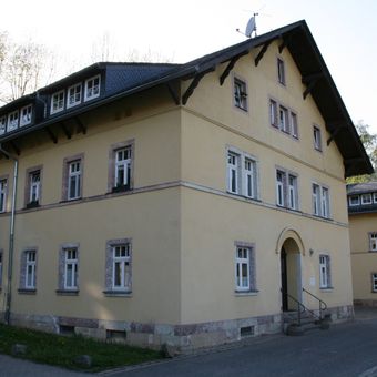 Einzeldenkmale der Sachgesamtheit Baumwollspinnerei E. I. Clauß Nachfolger: ehemaliges Ledigenwohnheim mit Kinderbewahranstalt und Kirchgemeindesaal mit Einfriedung (siehe Sachgesamtheitsliste - Obj. 09240155, gleiche Anschrift) Zur Baumwolle 17