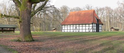 Feeding barn in the animal park Hannover, Listed building in Hannover-Kirchrode, Germany