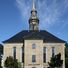 La Iglesia de Cristián presenta forma rectangular con muros de ladrillo amarillo y acabados en piedra arenisca, alcanzando 70 metros de altura.