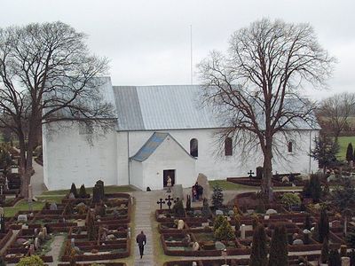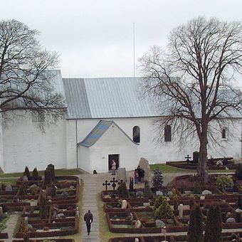 La iglesia conserva frescos originales del siglo XI, aunque fueron replicados en 1926 por el pintor Johan Thomas Skovgaard tras sufrir daños.