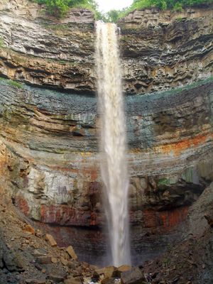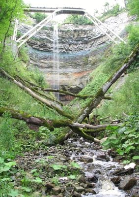 La cascada Valaste cae 30.5 metros sobre el acantilado de piedra caliza Baltic Klint, siendo la cascada más alta de Estonia y territorios vecinos.