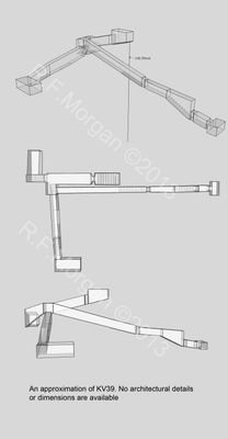 KV39 es una tumba excavada en la roca en el Valle de los Reyes que se extiende más de 100 metros en los acantilados. El interior cuenta con dos pasillos principales que se ramifican hacia el este y el sur desde una cámara central.